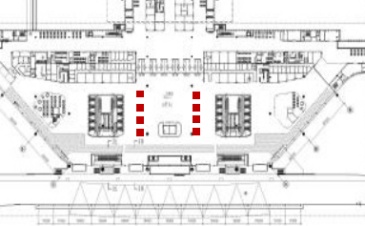 中川国际机场T2航站楼和高铁站的通道处包柱